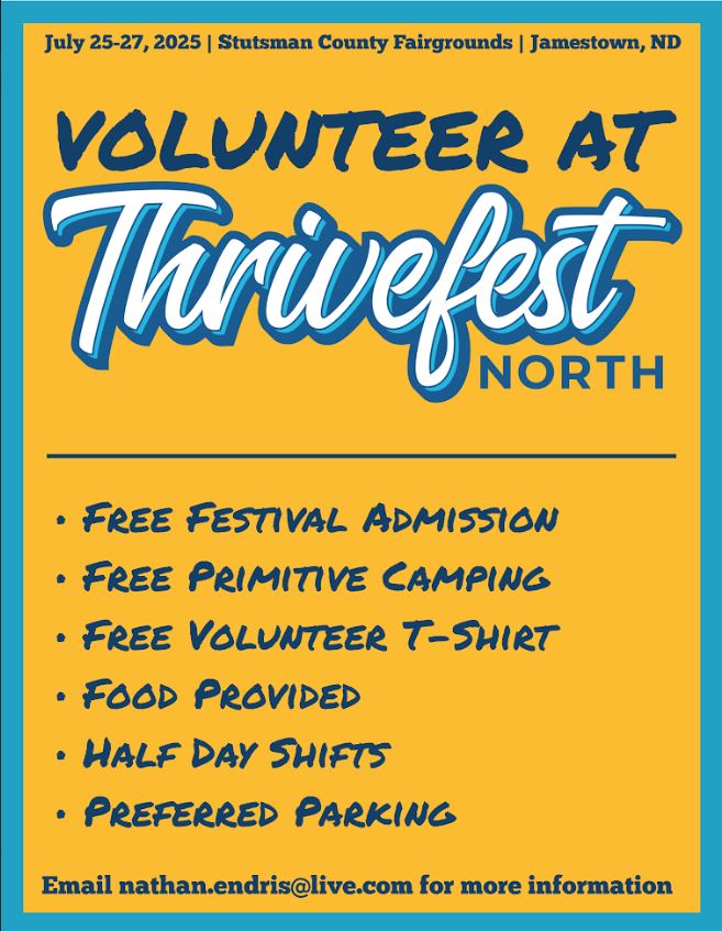 If you would be interested in volunteering for Thrivefest or any of our events, please email nathan.endris@live.com